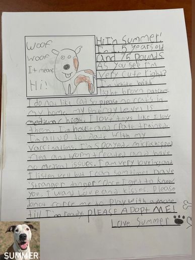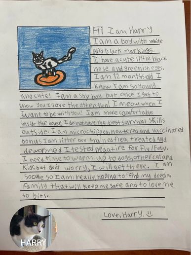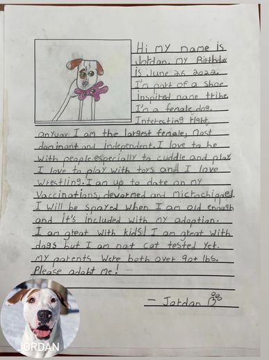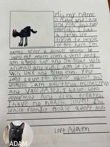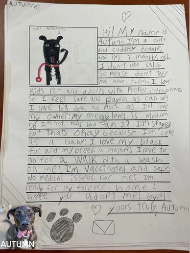 These students generously made individual adoption write ups for some of the animals in our rescue, in hopes of helping them get adopted.