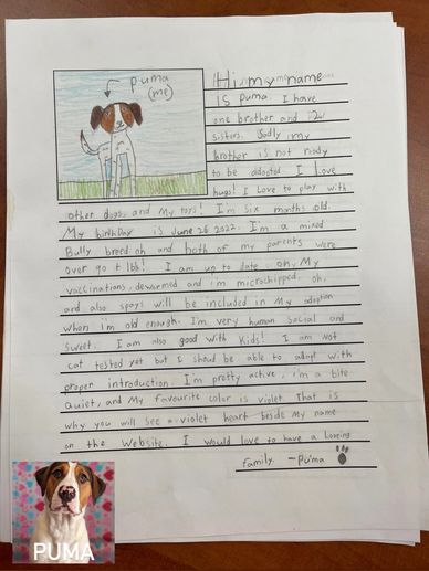 Not only are we amazed at this thoughtful gesture, we were blown away by these beautiful drawings and profiles created by these children. Their kindness and curiosity is what makes a difference in this world. It was so refreshing to see their teacher creating this assignment for the children to do. We are strong believers that to have less animal cruelty in the world and more compassion for animals… is by having the younger children properly educated and participating.