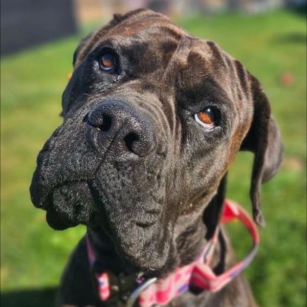 ✨ The best part? For a Presa, Candy has an amazing temperament. She’s goofy, and way more “snuggle bug”. So, if you want a hilarious mix of bodyguard, oversized lap dog, and full-time comedian… Candy is your girl. Her home will have to continue her basic obedience and structure. She’s pretty laid back and easy going.